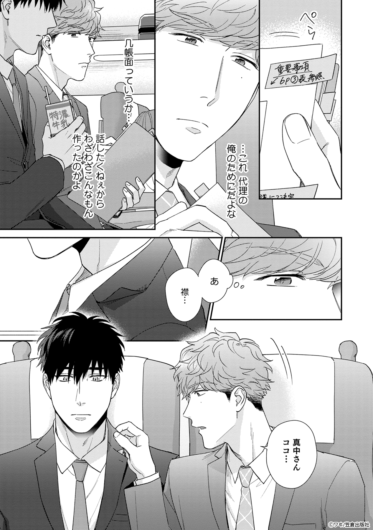 ドライな新入社員の白川は、自らを異様に避ける上司の真中と、出張先のホテルで一晩過ごすことに。